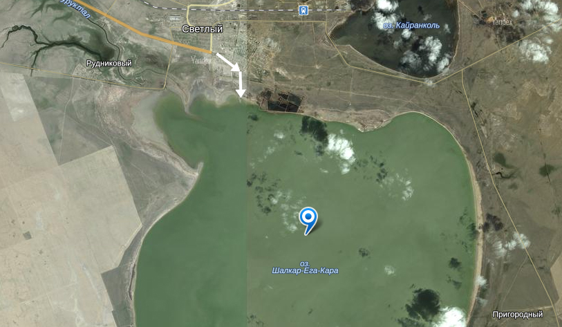 Из посёлка Светлый двигаться на юг примерно полтора километра.