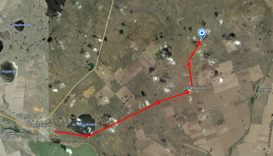 Из посёлка городского типа Светлый двигаться по дороге до посёлка Первомайский. Из посёлка повернуть на север. Ехать через карьер в точке N50.91851° E61.17389° затем на севере и северо-восток до въезда в заповедник в точке N50.94723° E61.20054°.