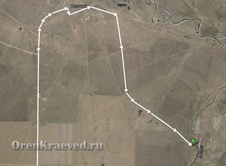 1 вариант. Из посёлка городского типа Светлый двигаться по дороге в сторону посёлка Восточный. Из посёлка повернуть на юго-восток и двигаться по полевым дорогам. Контрольные точки: