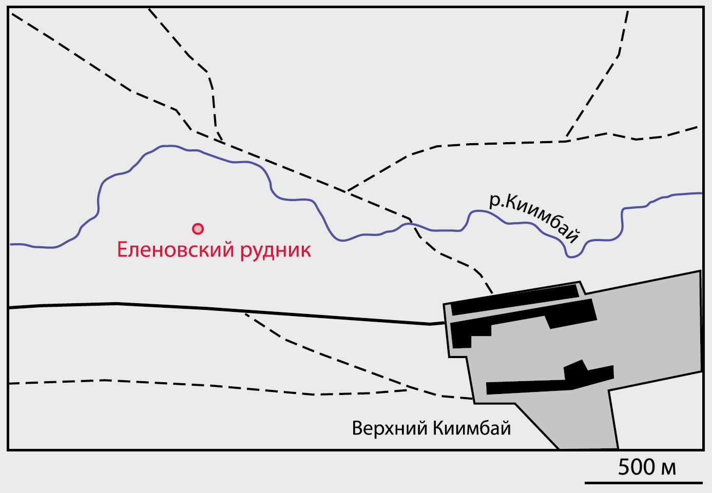 В 3,5 км к В от с. Еленовка, между р. Киембай и шоссе Домбаровка-Ясный. АО «Еленовское»