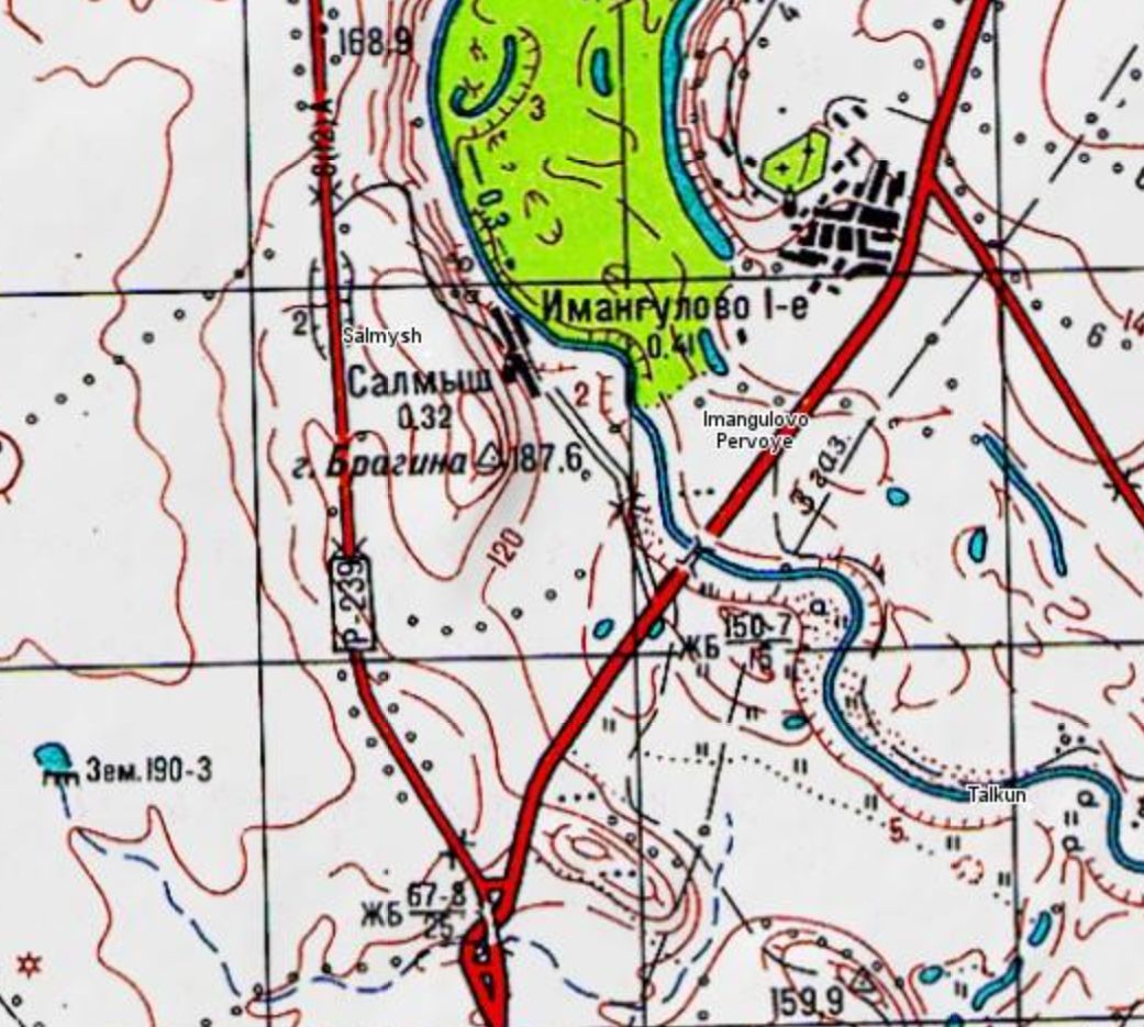 Вершина с отметкой 187,6 находящаяся в урочище Брагина гора. На склоне горы выложена хорошо заметная надпись «СЛАВА ТРУДУ».