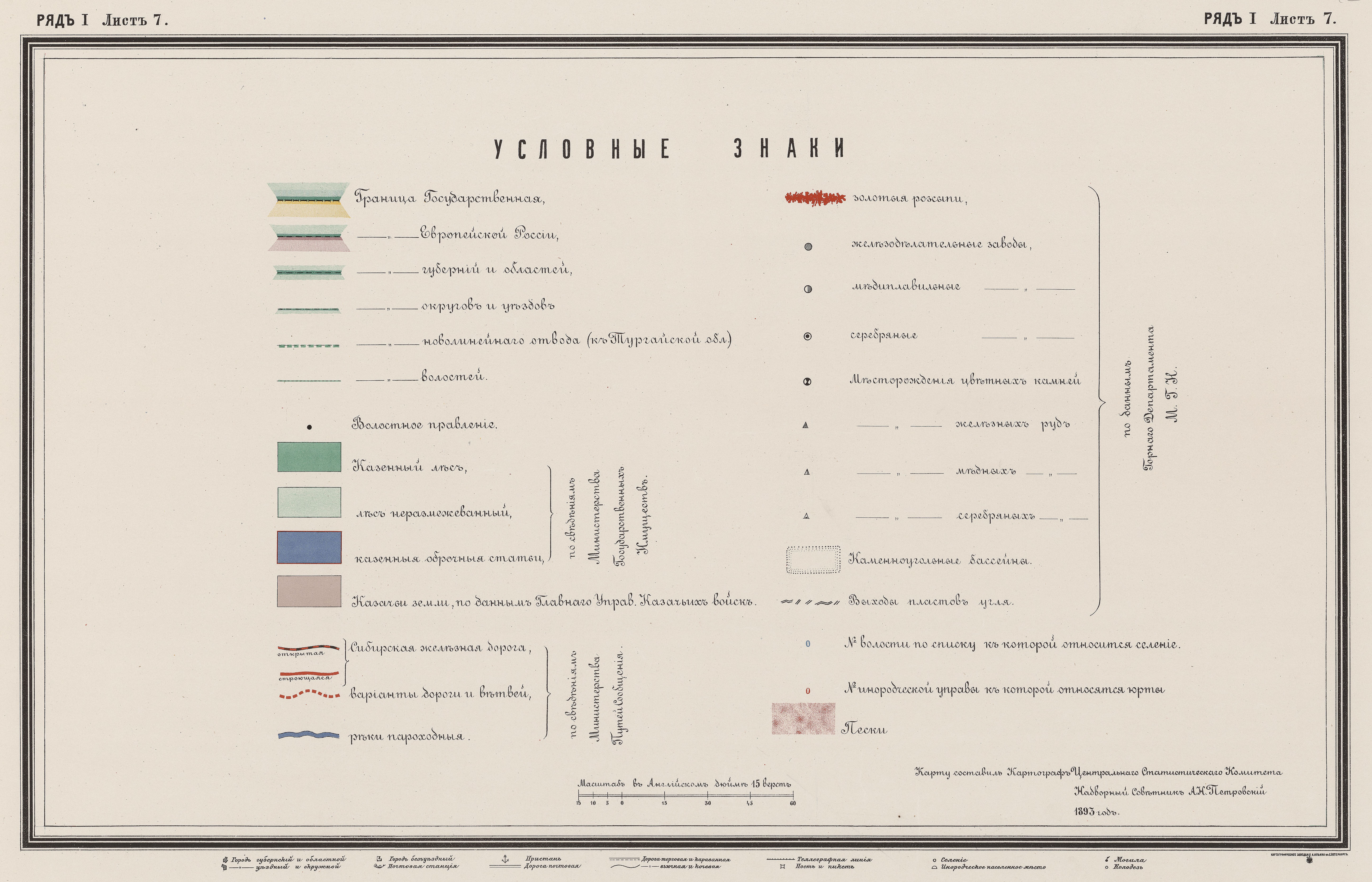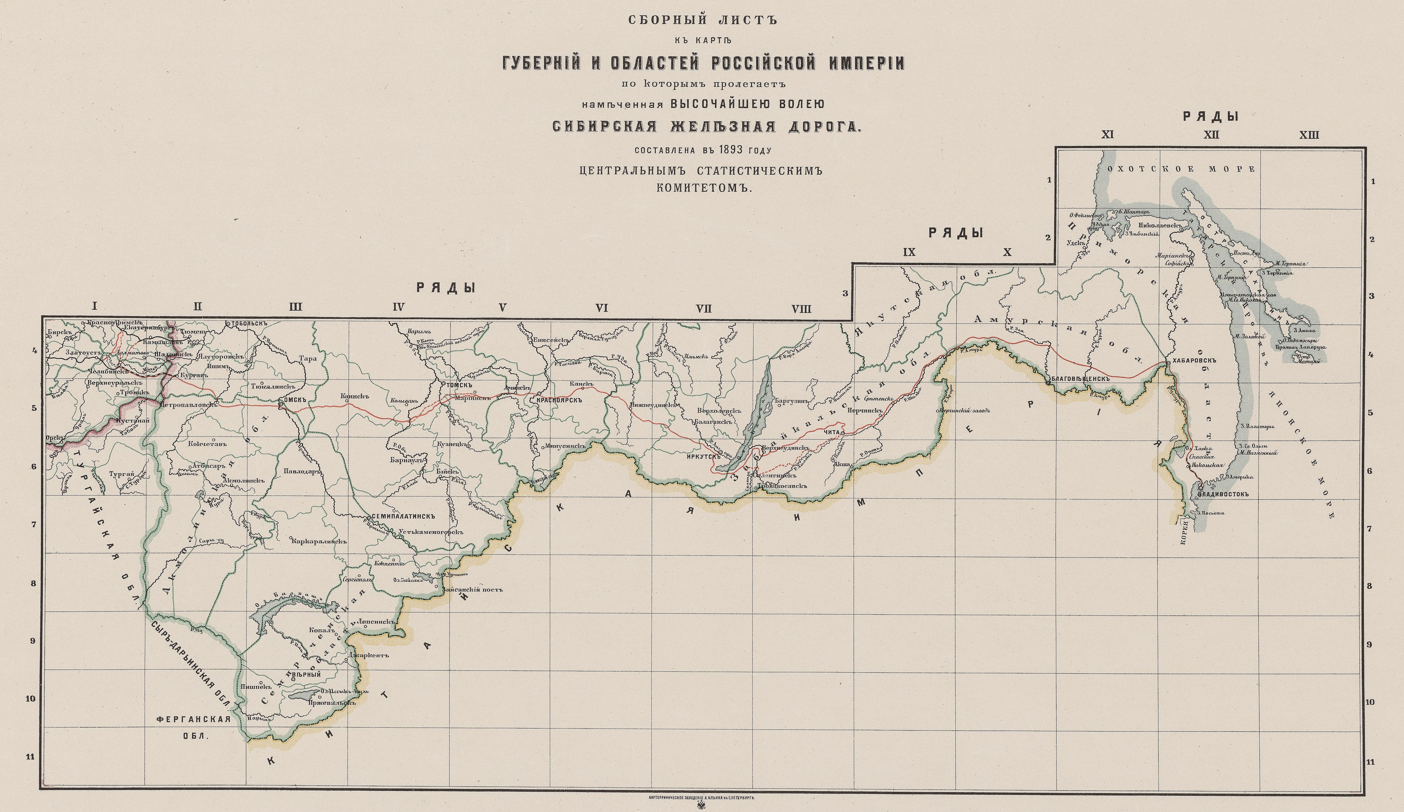 Карта губерний и областей Российской Империи по которым пролегает намеченная высочайшей волей Сибирская железная дорога 1893 года