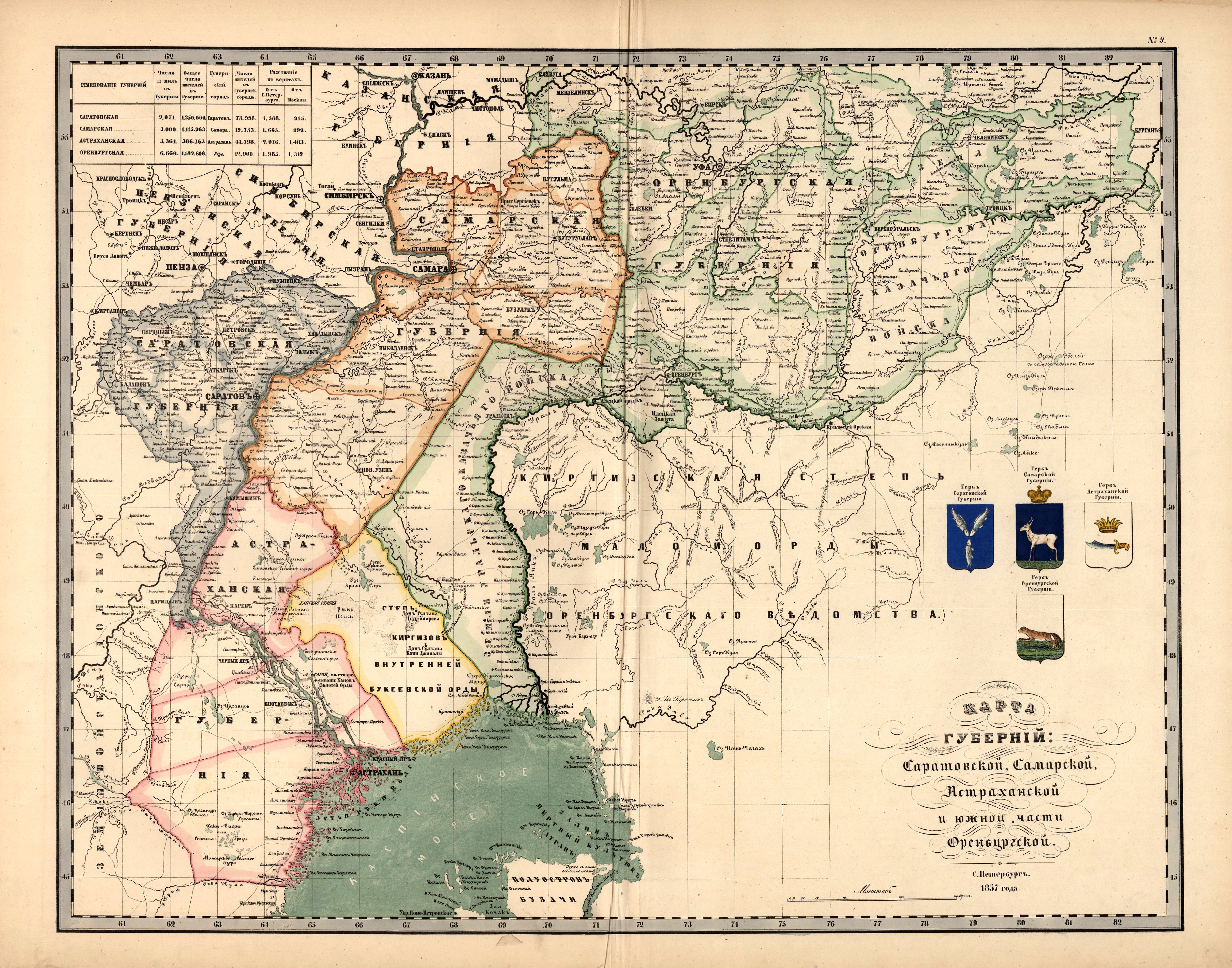Карта губерний Саратовской, Самарской, Астраханской и южной части Оренбургской