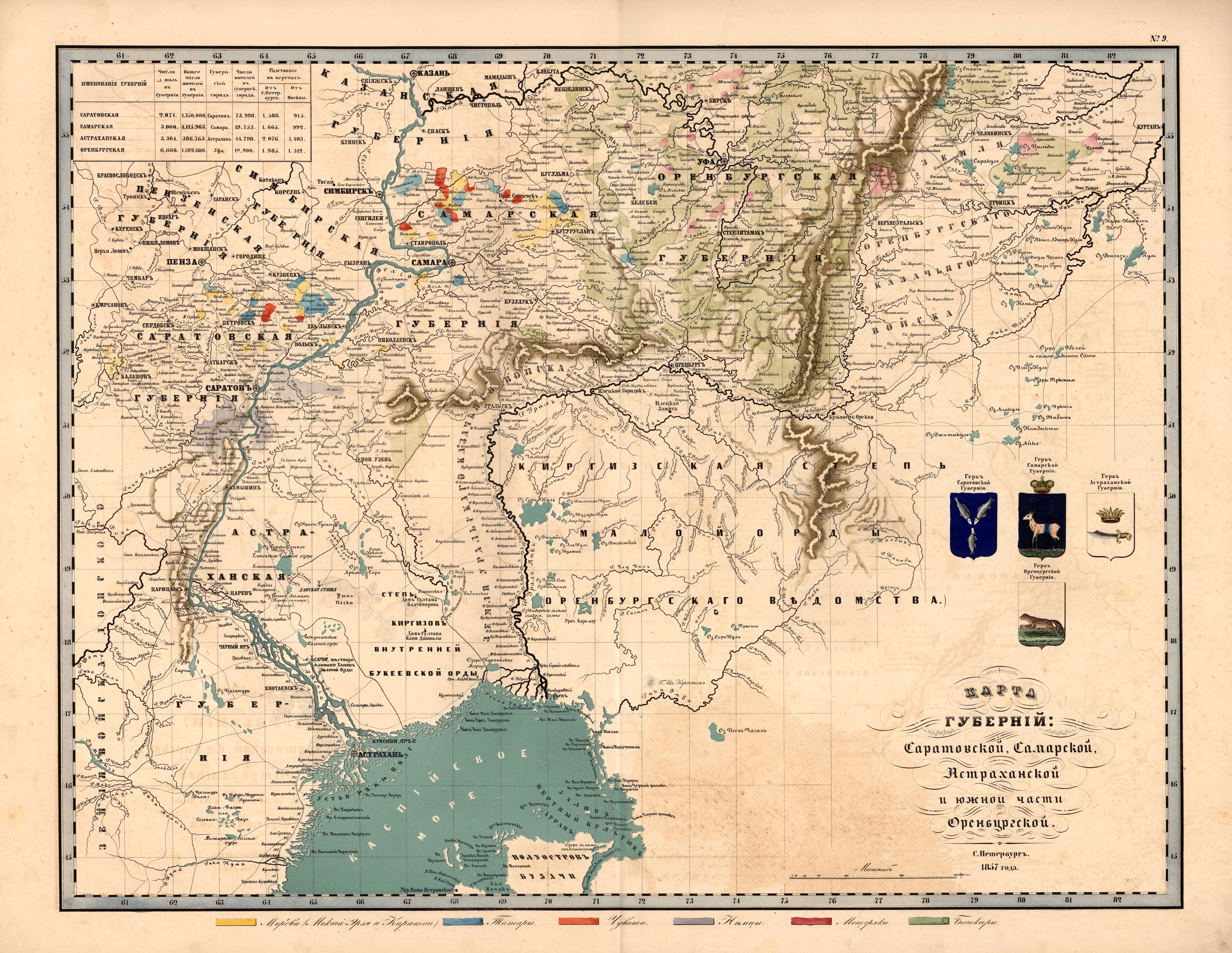 Карта губерний Саратовской, Самарской, Астраханской и южной части Оренбургской (этнограф)