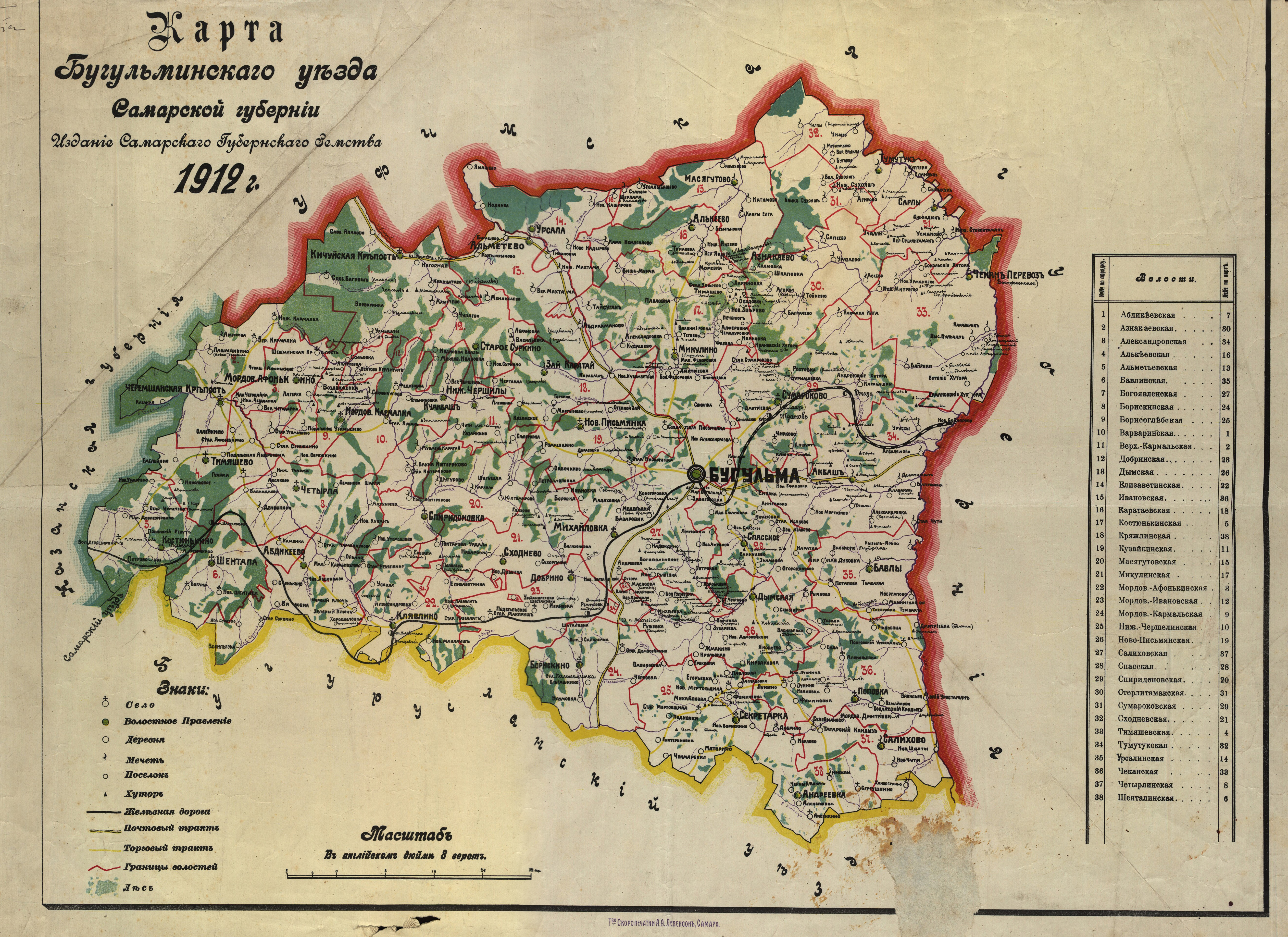 Карта Бугульминского уезда Самарской губернии. 1912 год