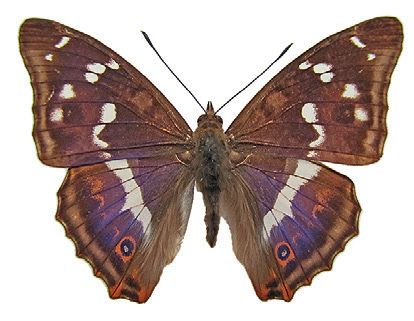 Краткое описание. Довольно крупная бабочка. Длина переднего крыла – 33–47 мм. Сверху на нём имеются пятна и перевязи белого цвета (5). Крылья самцов сверху тёмно-бурые с синим металлическим отливом, у самок – светло-бурые. На заднем крыле имеется прямая белая полоса с внешним зубцом, у заднего угла – рыжее кольцеобразное пятно (6).