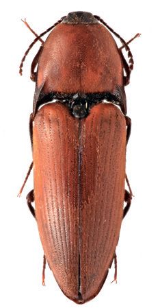Краткое описание. Крупнейший представитель семейства в области, длина тела 17–24 мм. Тело коричнево-чёрное, обычно большая часть переднеспинки и надкрылья кирпично-красные, реже переднеспинка и надкрылья также коричнево-чёрные. Усики и лапки красновато-коричневые. Усики пиловидные с третьего членика. Переднеспинка матовая. Основание щитка слегка округлое (1, 2).