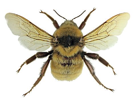Краткое описание. Очень крупный шмель с преобладающей желтой окраской, хорошо определяется в полете и на расстоянии. Спинка жёлтая, с чёрной перевязью между основаниями крыльев. Брюшко желтое. Лоб в черных, темя отчасти в жёлтых волосках. Крылья затемнённые (5, 6).
