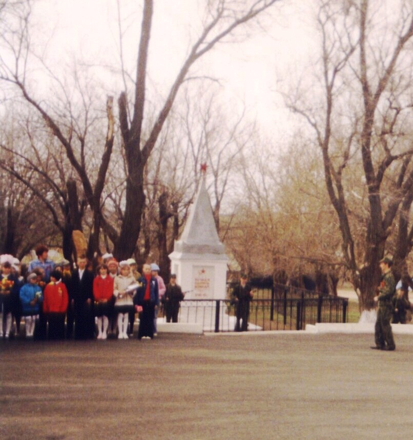 Обелиск с надписью: «Вечная память воинам – односельчанам, павшим в 1941–45 гг.». Первый памятник односельчанам, павшим в Великой Отечественной войне. Был открыт весной 9 Мая 1965 года в год 20-летия Великой Победы в парке перед сельским домом культуры.