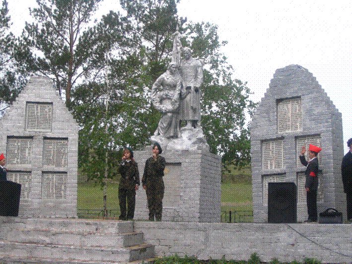 Памятник представляет собой скульптурную группу. В низком поклоне и лавровым венком в руках, склонилась женщина-мать над могилой погибших воинов. Рядом с ней солдат-воин. Он стоит в скорбном молчании у солдатской могилы. В правой руке воин крепко держит Красное Знамя, в левой руке солдатская каска, за спиной автомат. По правую и левую стороны две плиты, пропилеи с пятью нишами, где помещены списки 305 погибших воинов-односельчан. Скульптурная композиция изготовлена из бронзы, высотой 1 м 60 см. Памятник установлен на тумбе, длина которой 1 м 80 см ширина 1 м 80 см высота 1 м 20 см. Вся композиция установлена на площадке из кирпича и бетона. Длина площадки 10 м, шириной 3 м, высота 60 см. Памятник окружает ограда длиной 27 м, шириной 21 м. По периметру ограды насаждения сосен.