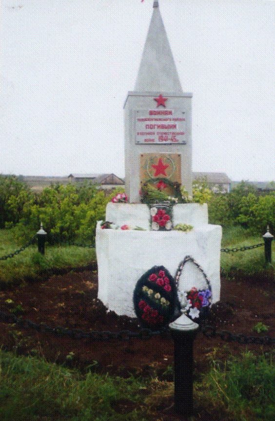 Сооружение представляет собой обелиск в виде пирамиды со звездой на шпиле. Вокруг обелиска двойное ограждение. Чугунные узорчатые решетки ширина 18 м 60 см, длина 18 м 80 см. Столбики с декоративной цепью 17 м 70 см. Высота постамента 4 м 20 см.