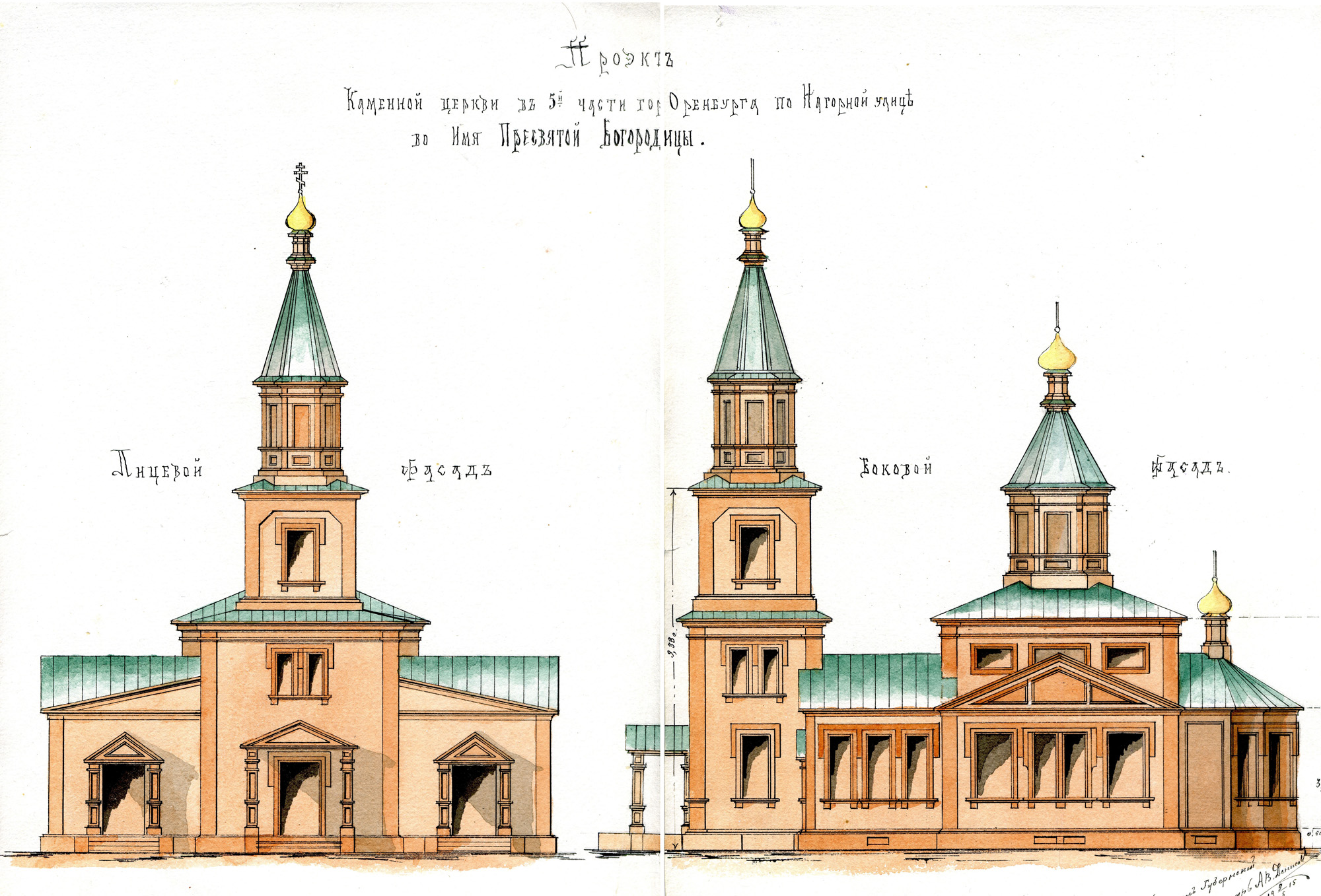 Проект каменной церкви в 5-ой части города Оренбурга по Нагорной улице во имя Пресвятой Богородицы. 9 мая 1915 года