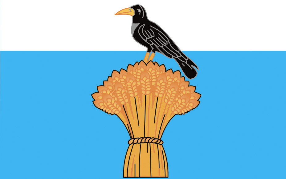 Описание герба: В лазоревом поле серебряная глава и поверх него –золотой сноп, на котором сидит со сложенными крыльями черный, с золотыми глазами, клювом и лапами, грач.