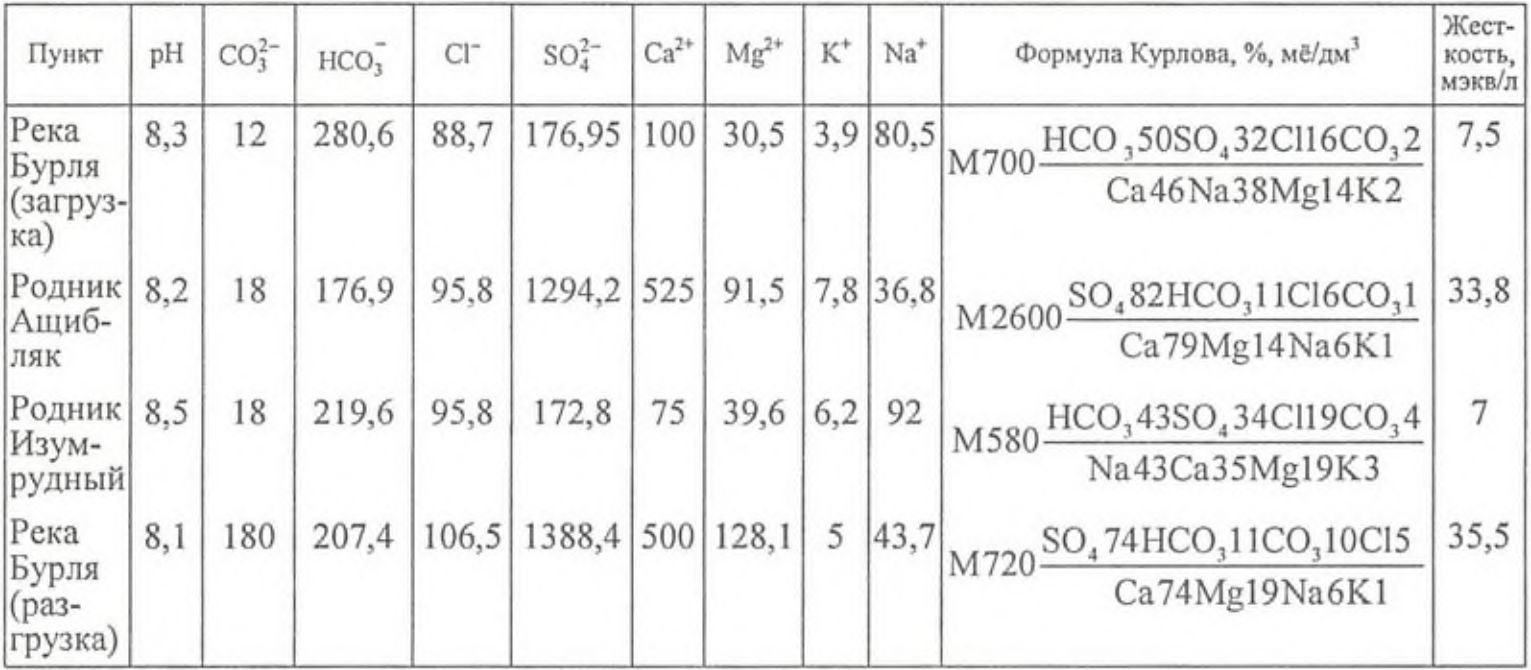Химический состав поверхностных и подземных вод Кзыладырского карстового поля, мг/дм3